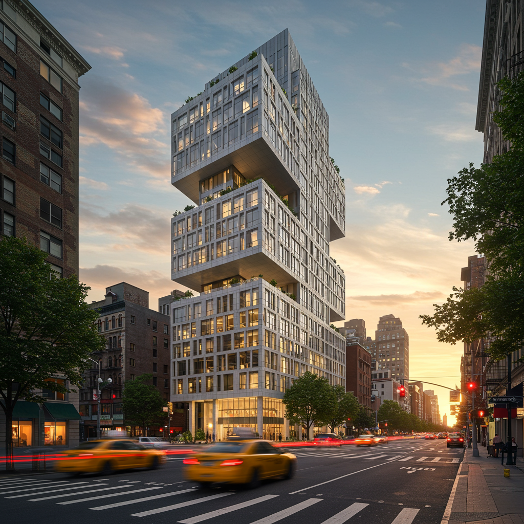 The Westly joins the ongoing trend of apartments in New York City that are being constructed with visually striking and impossibly daring cantilevers that seem to defy gravity. At just 20 stories tall, the topped out Upper West Side property is addressed as 251 West 91st Street and is Designed by ODA Architects for Adam America Real Estate and Northlink Capital. Inside are 52 condominium units that are being marketed by Ryan Serhant of SERHANT. Sales are underway and construction should fully wrap up in the coming months.