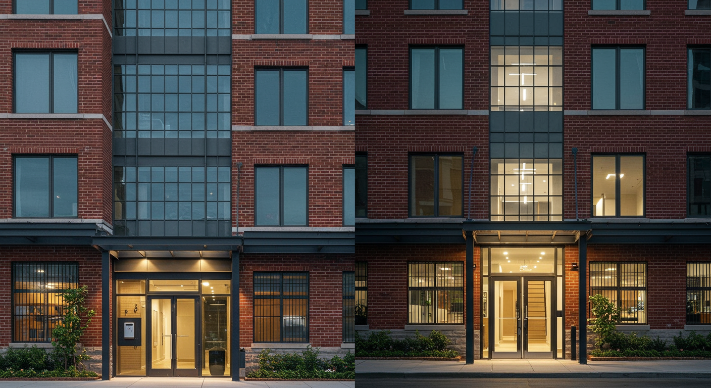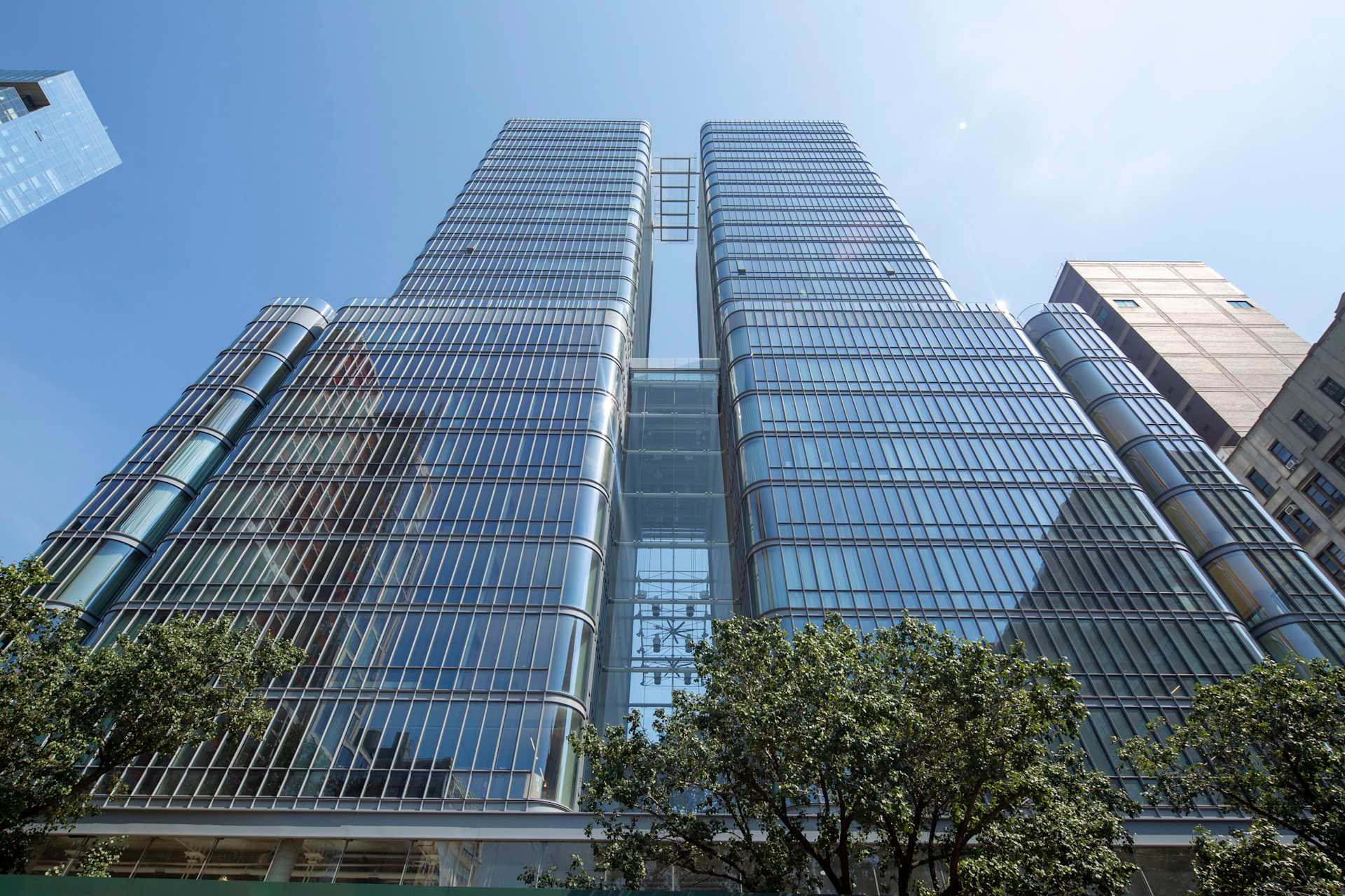 Designed by Renzo Piano and developed by Bizzi & Partners with interiors by RDAI, 565 Broome SoHo is one of the earliest examples of the residential boom and supply of new Hudson Square apartments. Standing 25 stories tall and 290 feet high, there are 112 condominium units and over 17,000 square feet of amenities. The building is cladded with a sleek glass curtain wall with rounded corners and features a two-tower structural setup connected by a central glass atrium.