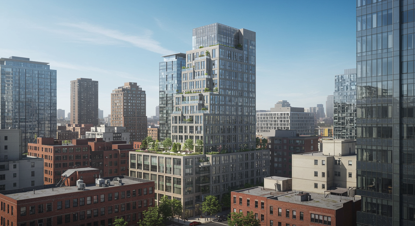 Designed by Beyer Binder Belle and developed by Extell, 70 Charlton Street stands as two 22-story towers cladded in a brick facade and conjoined by a passageway on the second floor of a landscaped courtyard. Inside is a mix of 92 condominium units and 29 market-rate rental apartments. Homes range from one- to four-bedroom layouts. Amenities include a 60-foot indoor saltwater swimming pool, a fitness center, a steam room, a lounge with a catering kitchen, and a children’s playroom.