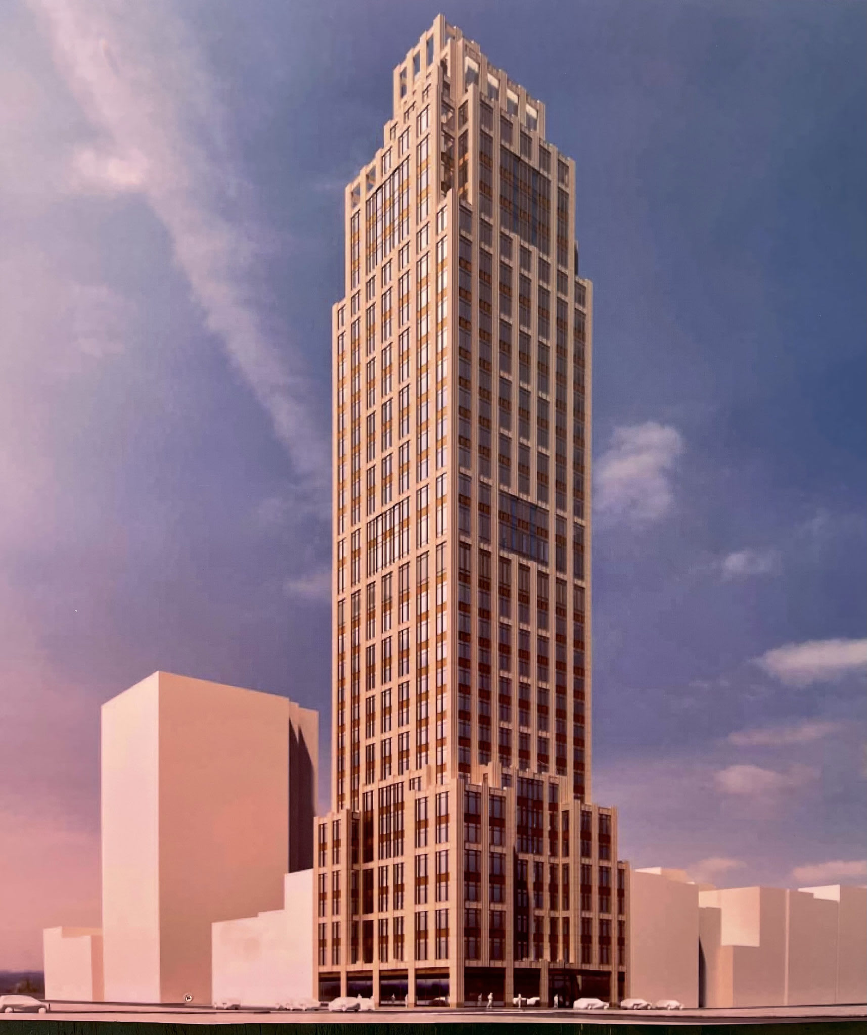 Residential amenities will include a rooftop lounge, a theater, a children's playroom, and a rooftop pool.