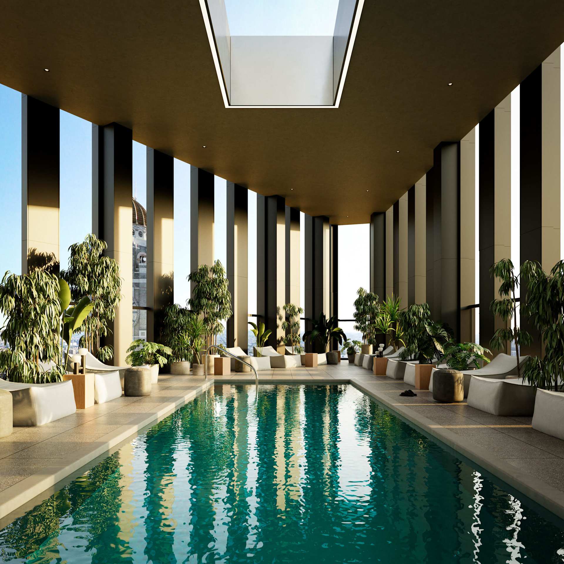 With brutally hot summer temperatures and unforgiving humidity in the last several weeks, it's only natural to find relief from the heat. For those looking to put on their bathing suits in the comfort of their own properties, there's no better way to do so than living in a building that comes with your own swimming pool. Many developers are constructing new nyc residences, supply a large wave of condominium and rental developments, to include swimming pools as part of residential amenity packages, and below are five examples of such projects that have incorporated them into the design and lifestyle of a building and its residents.