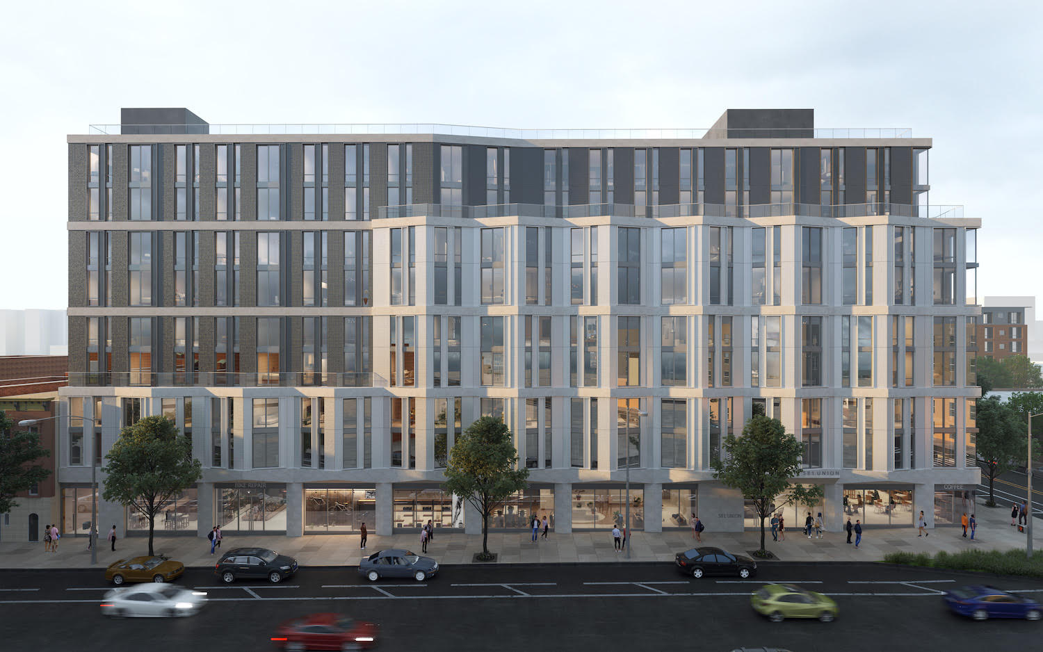 Our last project on the list is 585 Union Street, an upcoming nine-story residential building designed by Fogarty Finger and developed by Tavros Capital, Charney Companies, and Canyon Partners. The ground-up 95-foot-tall structure will span a total of 167,000 square feet and yield 214 rental units in studio to three-bedroom layouts, with 25 percent designated as affordable housing, as well as 8,900 square feet of ground-floor commercial space.