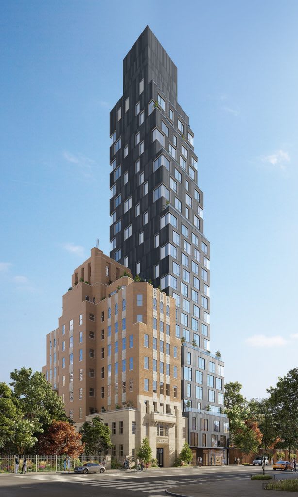 The 14,000 square feet of amenities will include an indoor swimming pool in the cellar and a 6,700-square foot private park with a children’s playground and barbecue area, as well as a fitness center/yoga studio, a screening room with a lounge, a 24-hour doorman/concierge, and a live-in resident manager.