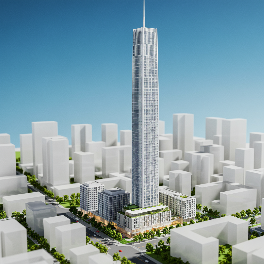 Situated not too far from our previous contender is the 28-story Sunrose Tower at 620 West 153 Street in Hamilton Heights, Manhattan. Designed by J Frankl Architects, the topped out mixed-use residential structure will yield a total of 238 residences ranging from studios to two-bedroom units, 72 of which are designated as affordable housing.