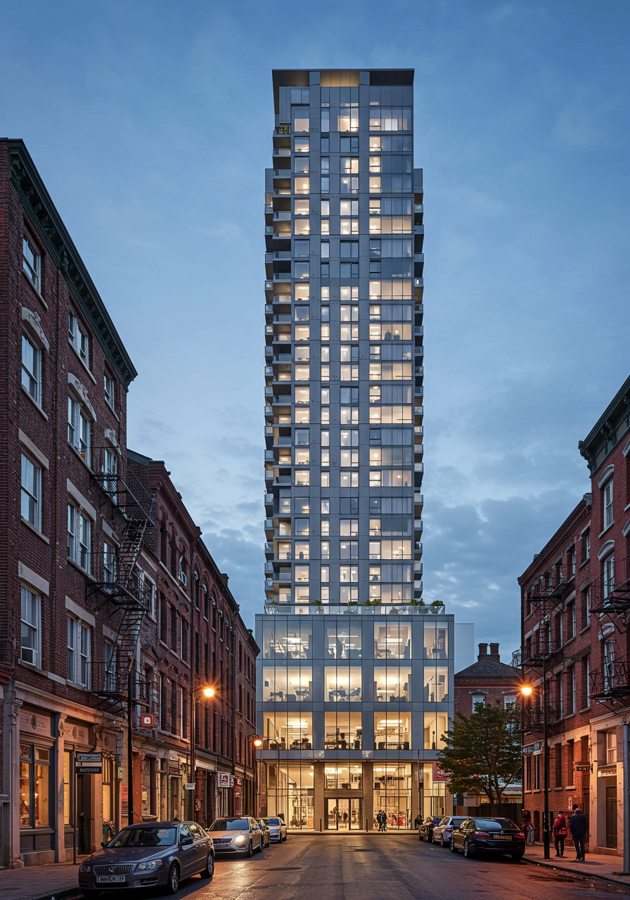 Amenities will include a 24/7 attended lobby, a ground-floor community space, business center, an outdoor rooftop terrace, a courtyard, a library, and an art room. Completion is expected in November 2024.