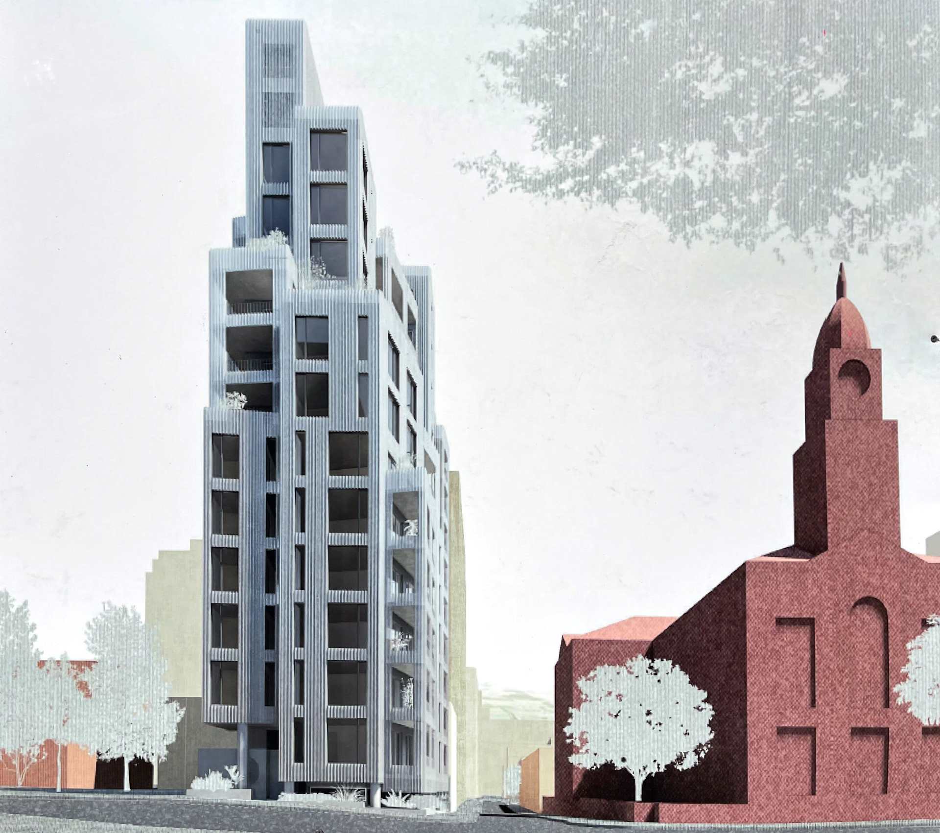 240 Willoughby Street is a ground-up residential building being constructed in Fort Greene. Designed by Fischer Rasmussen Whitefield and developed by The Rabsky Group, the project will top out at 30 stories tall and provide a total of 300 rental units. An unspecified amount will be allocated towards affordable housing. The reinforced concrete superstructure is already above street level and it is anticipated to be finished sometime next year. The Rabsky Group previously closed on a $72 million construction loan provided by SCALE lending to help construct 240 WIlloughby street, as well as provide funds to renovate an existing 21-story, 189-unit multifamily development within the same complex, formerly known as the Brooklyn Hospital Complex.