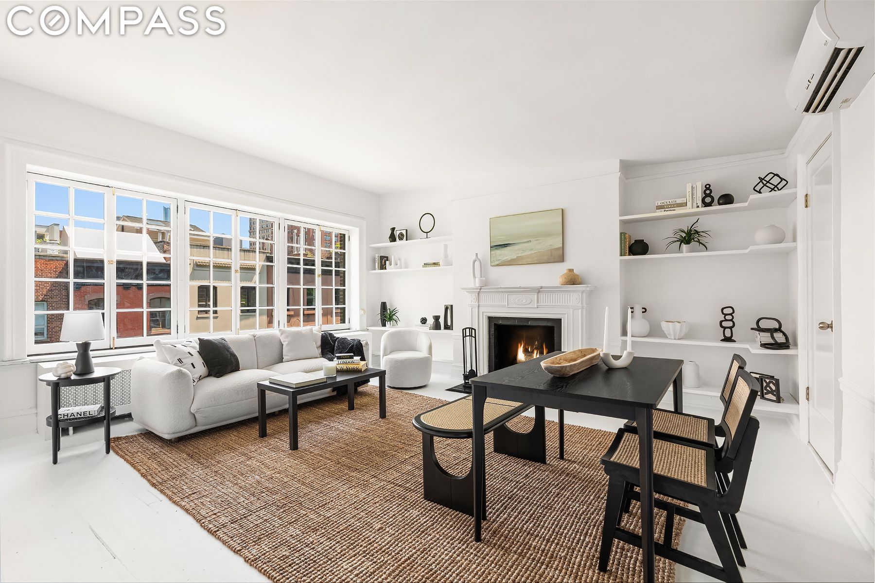 Highly functional built-out bookshelves and walk-in closet, in addition to sliding barn door, have added modern comfort while preserving pre-war charm. The functional renovation has been done to make the home turn-key and ready to move in.