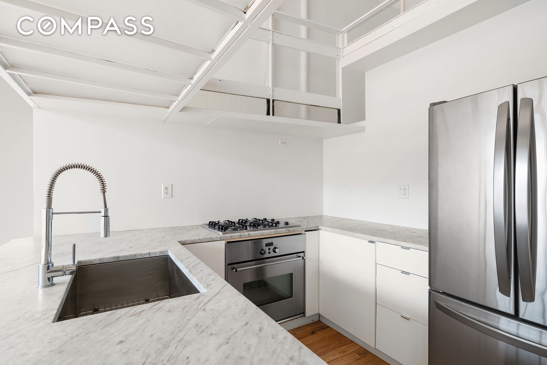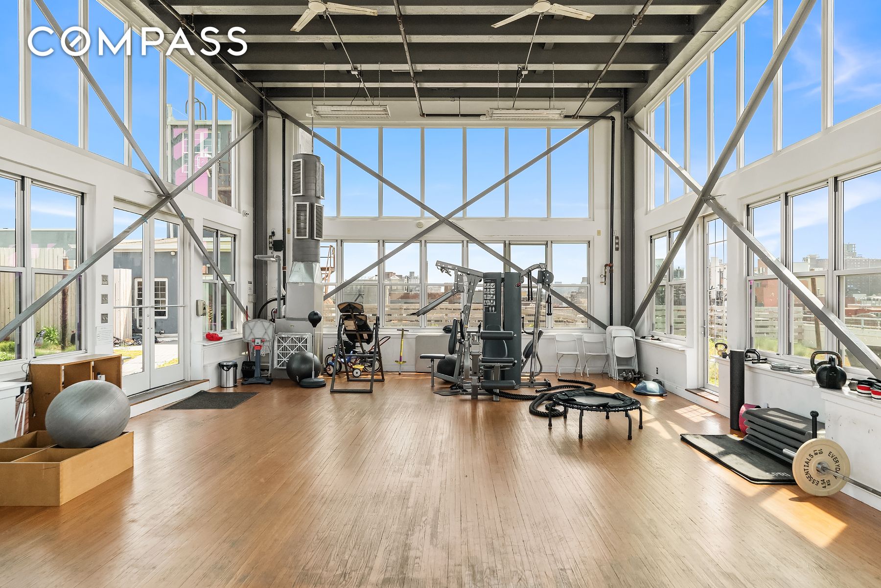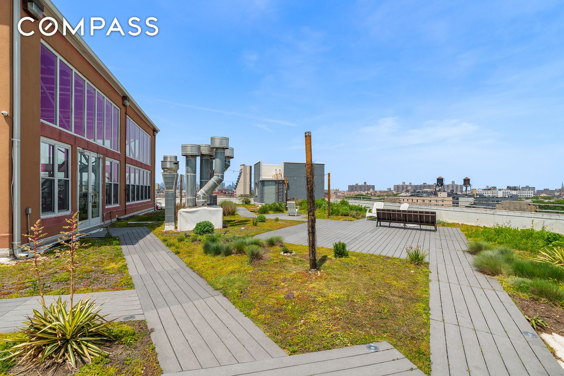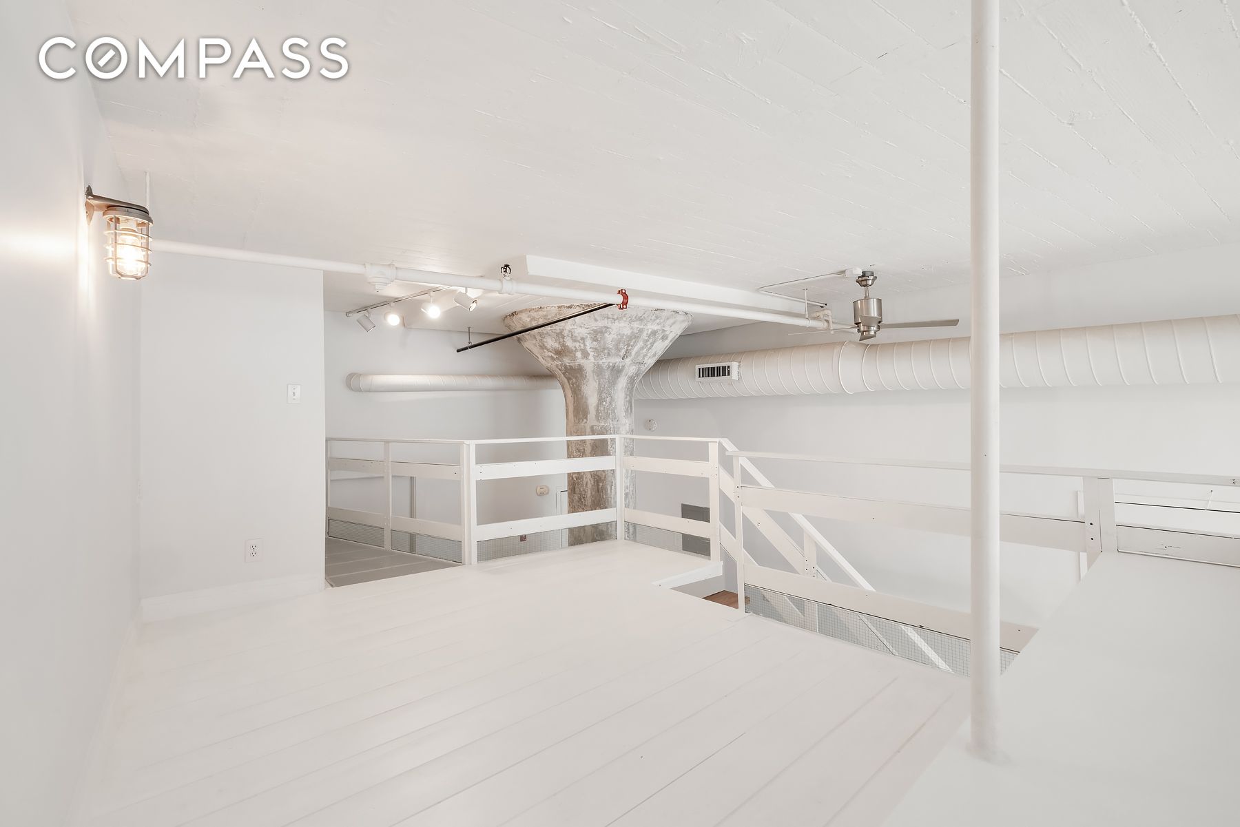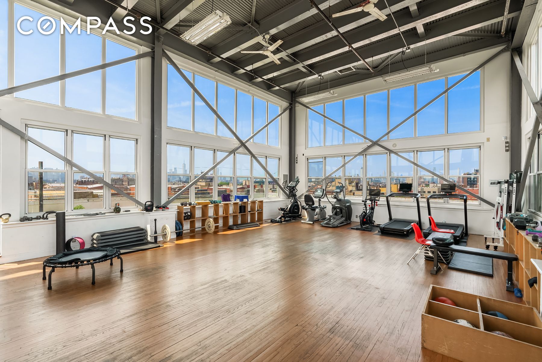 Live large in this character-filled duplex loft set in a former chocolate factory at the intersection of Williamsburg and Bedford-Stuyvesant. Soaring 13-foot high ceilings, exposed ductwork, and original concrete columns define the space, while oversized factory windows flood the home with natural light.